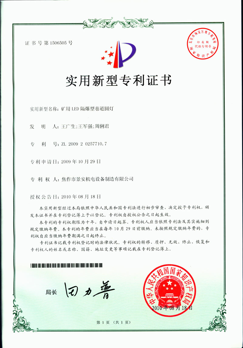 焦作景安公司始終堅(jiān)持“以科技為先導(dǎo),以市場(chǎng)為導(dǎo)向”的發(fā)展戰(zhàn)略,不斷進(jìn)行新產(chǎn)品的研制和開發(fā),在國(guó)家“六五”到“九五”期間,承擔(dān)和參與了國(guó)家多項(xiàng)科技攻關(guān)項(xiàng)目,產(chǎn)品的技術(shù)和質(zhì)量一直處于全國(guó)同行業(yè)領(lǐng)先位置。并被中國(guó)電器工業(yè)協(xié)會(huì)評(píng)定為“質(zhì)量可信產(chǎn)品”。特別是在礦用防爆燈領(lǐng)域,礦用隔爆型半導(dǎo)體(LED)照明燈具,2008年列入國(guó)家火炬計(jì)劃,獲2009年河南省工業(yè)和信息化廳的科技成果二等獎(jiǎng),并擁有多項(xiàng)國(guó)家專利。